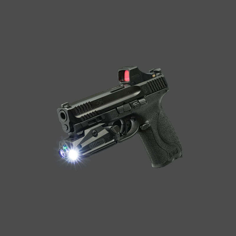 Die P.ID-PRO erweitert die P.ID-Waffenlampenserie um Infrarotfunktionen und bietet damit eine umfassende Lösung für Nachtsichtgeräte. Sie gewährleistet eine nahtlose Leistung im gesamten sichtbaren und infraroten Spektrum. Die P.ID Pro verfügt über einen sichtbaren Laser, einen Infrarotlaser, eine 500 Lumen / 8000 Candela starke LED-Weißlichtleuchte und einen leistungsstarken 350-mW-LED-Infrarotstrahler für optimale Vielseitigkeit bei schwachem Licht und präzise Zielidentifizierung.