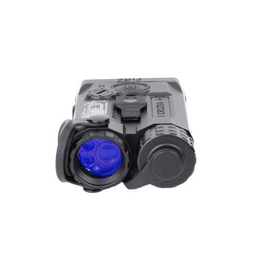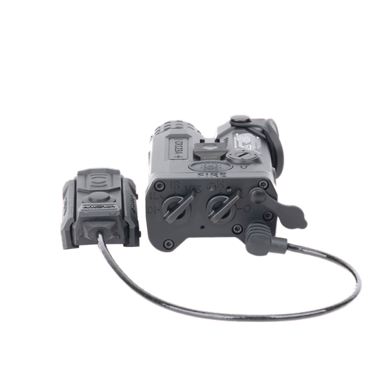 The rear on/off switch and a mode selector enhance ergonomics and ease of use. The IRIS module offers multiple operating modes, each with two brightness levels. The user can select between a visible laser, an IR laser, and an IR illuminator.