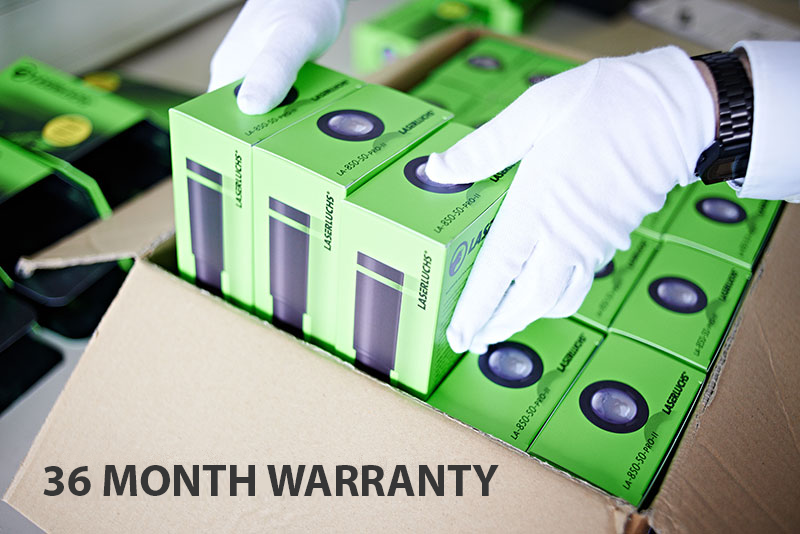 The name LASERLUCHS® stands for quality and many years of experience: We therefore manufacture our IR laser illuminators according to the latest industrial standards and norms and have them regularly certified by independent institutes. And we vouch for our quality. We offer a manufacturer's warranty of 36 months on all residual light amplifiers from LASERLUCHS®. This is just one example of the comprehensive service that we offer our customers and partners!