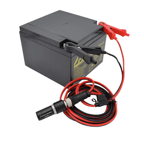 El adaptador de corriente le permite conectarse fácilmente a sistemas de baterías grandes, como la batería de un automóvil. El voltaje de las baterías puede estar entre 6-24 VDC, el adaptador de voltaje se ajusta automáticamente al voltaje respectivo y convierte el mismo al voltaje de destino de 3 VDC casi sin pérdidas. Con una capacidad típica de 100Ah, puede alcanzar un tiempo de funcionamiento de aproximadamente 4.000 horas con un LA850-50-PRO-II, por ejemplo, lo que corresponde a casi medio año de funcionamiento continuo.